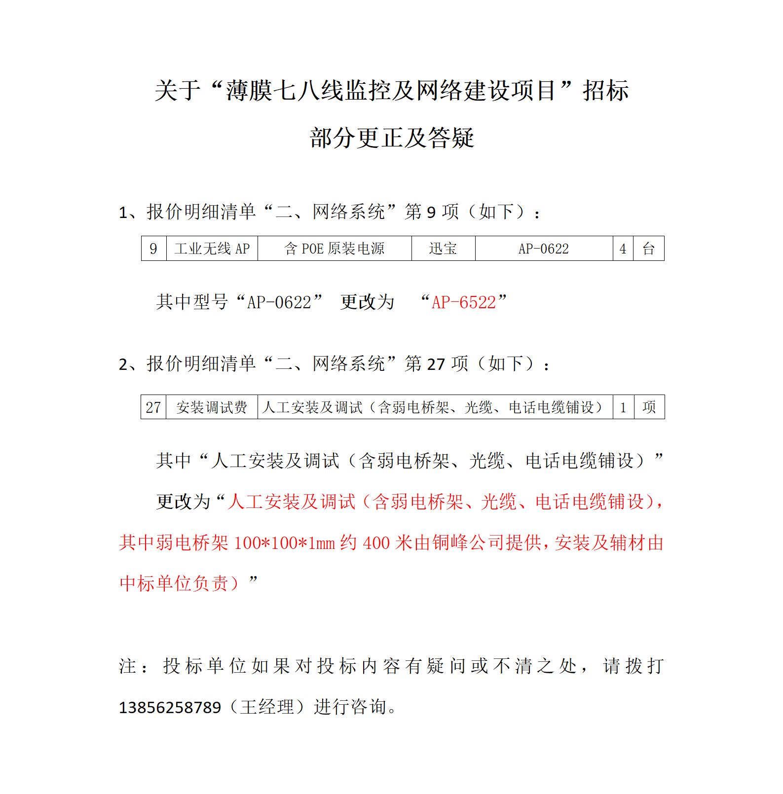 銅峰薄膜七八線(xiàn)監(jiān)控及網(wǎng)絡(luò)項(xiàng)目—招標(biāo)清單更改及答疑