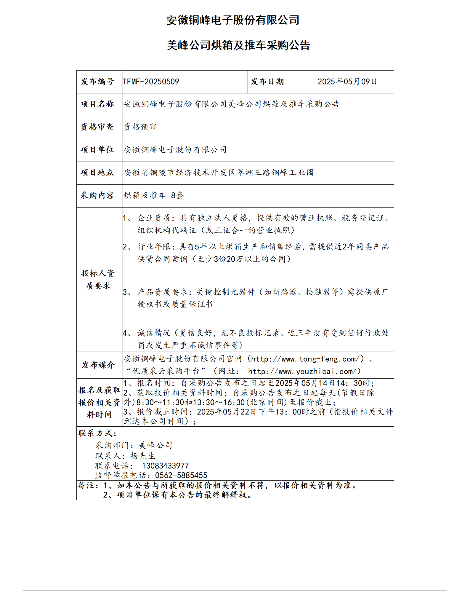 安徽銅峰電子股份有限公司 (烘箱公告)_01