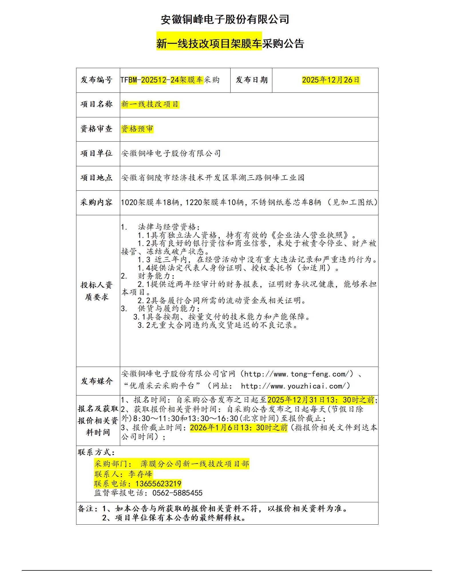 安徽銅峰電子股份有限公司 (新一線架膜車采購(gòu)招標(biāo)公告)_01