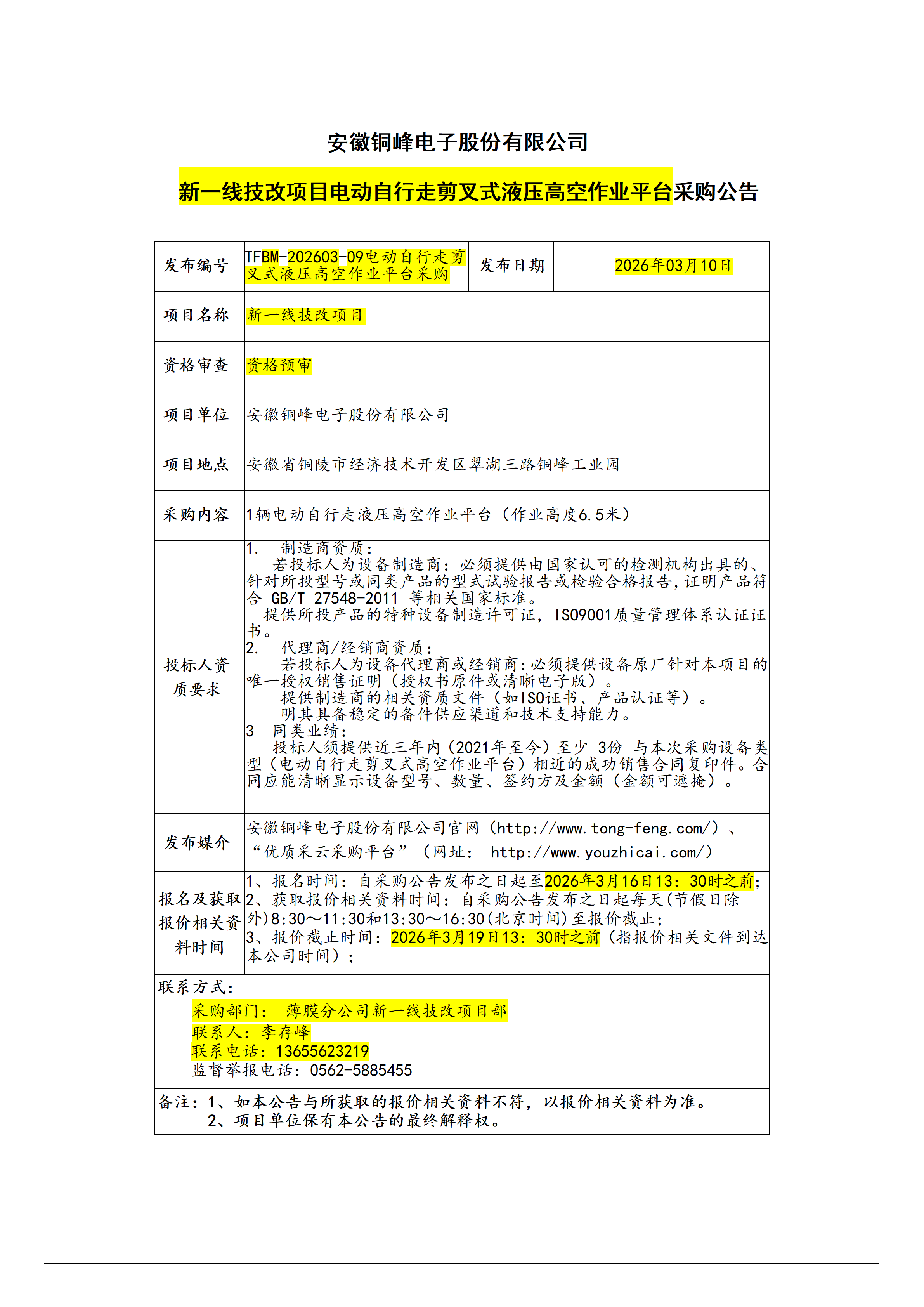 安徽銅峰電子股份有限公司 (新一線電動登高車采購招標(biāo)公告)_01