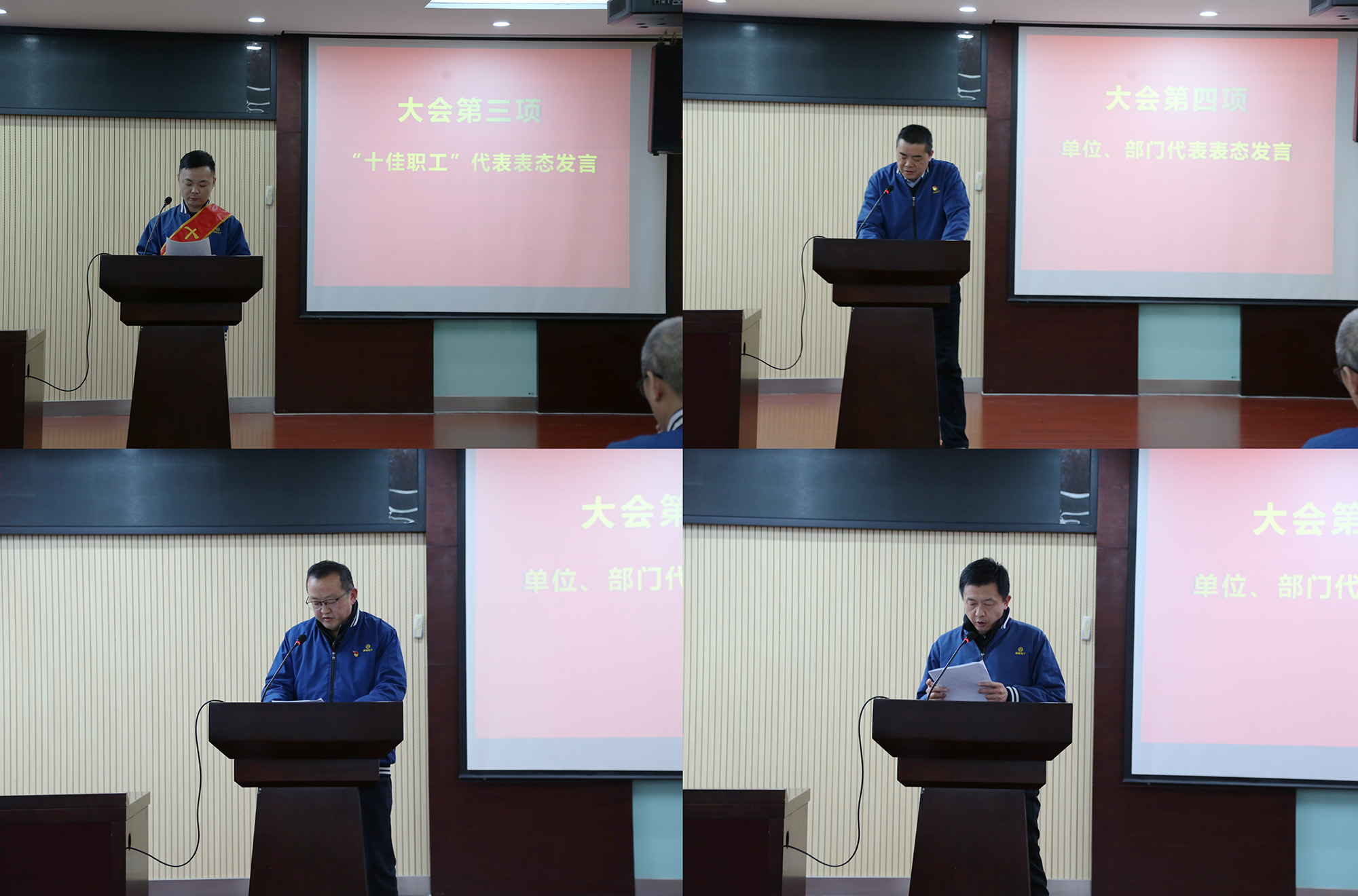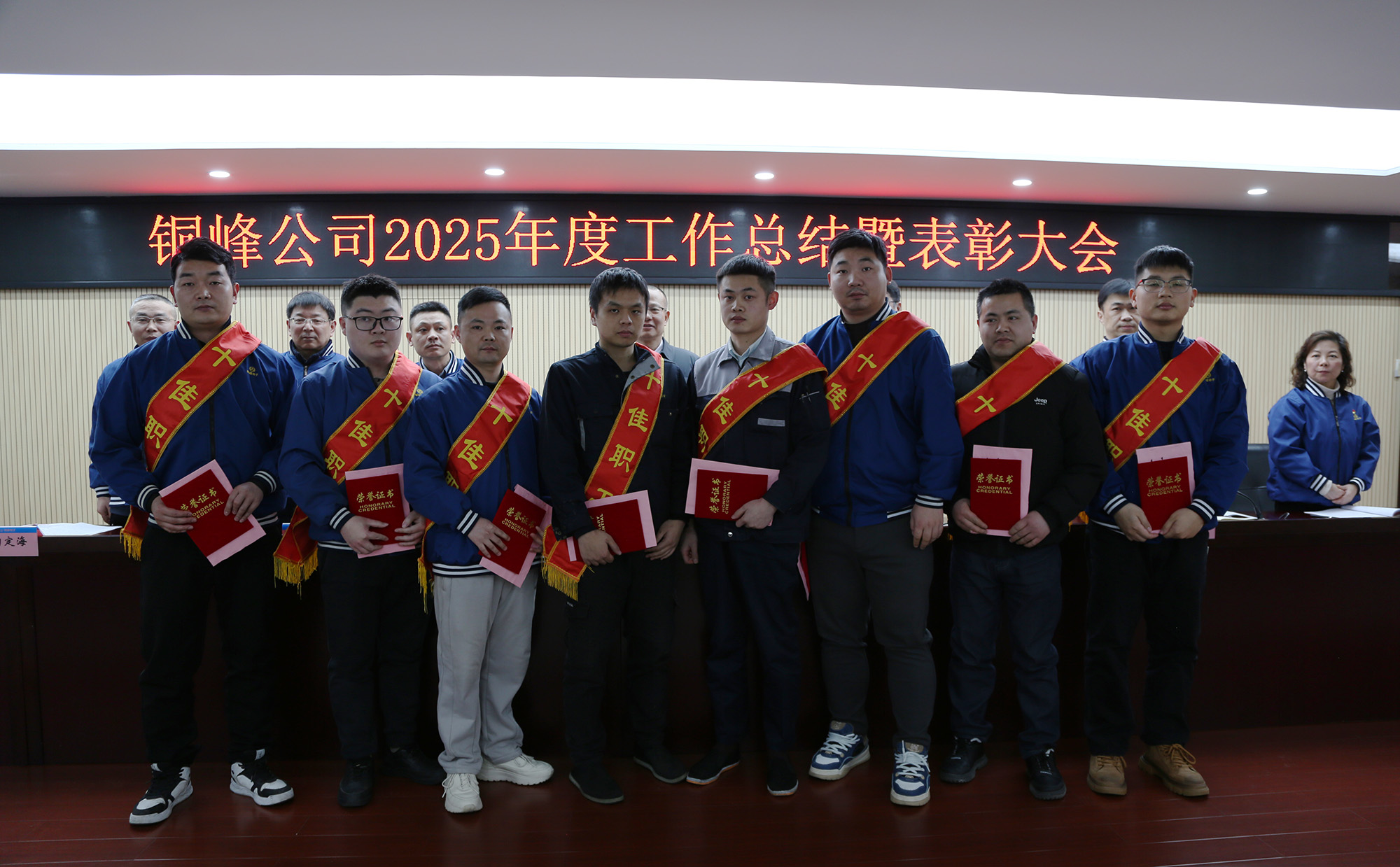 與會領導為受表彰的2025年度公司“十佳職工”頒發(fā)榮譽證書及獎金?!笆崖毠ぁ?、經(jīng)營單位和職能部門代表分別作表態(tài)發(fā)言。